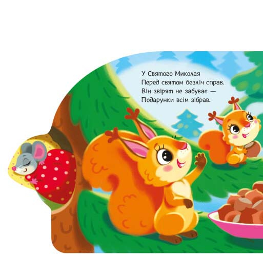Всі діти охоче отримують "миколайчики" на свято. От і лісові мешканці теж чекають на подарунки. Що ж приготував їм Миколай? Розгортайте чудову святкову книжечку «Подарунки для звірят» — і дізнаєтесь!