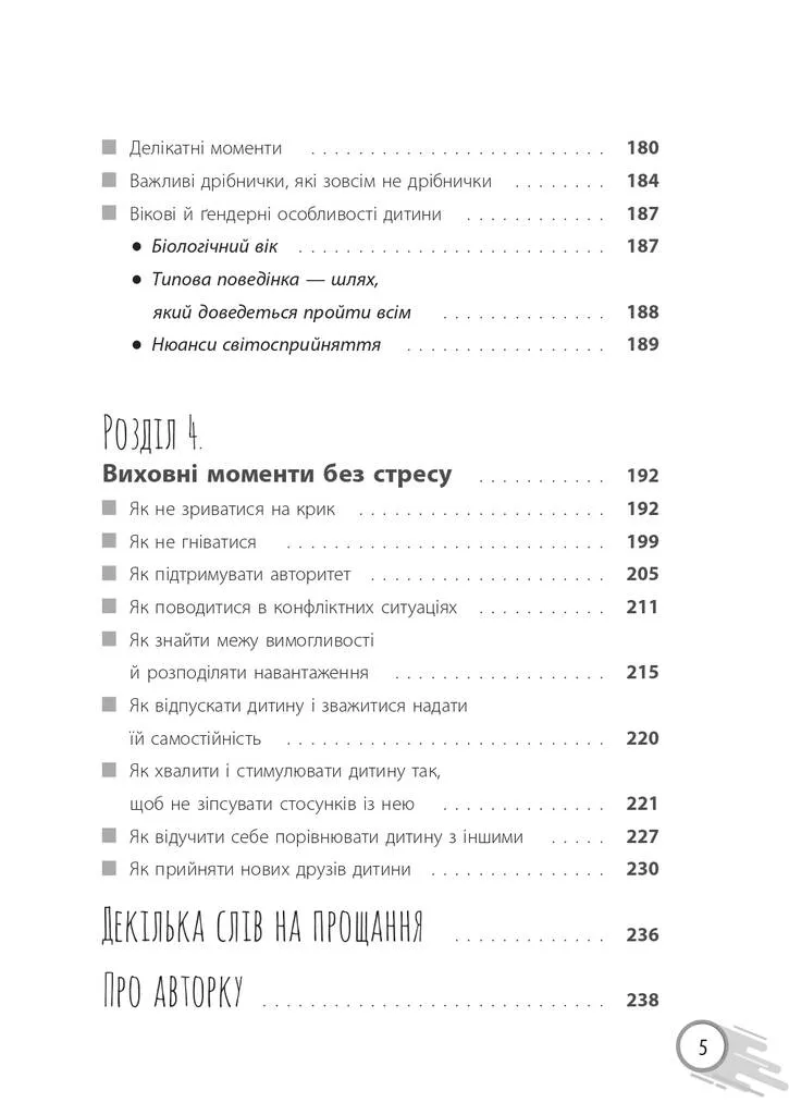 4. Виховні моменти без стресу. Найважливіший розділ для батьків. Як не зриватися на крик? Як хвалити і мотивувати дитину? Як знайти межу вимогливості? Та багато інших питань, які турбують батьків першокласників.