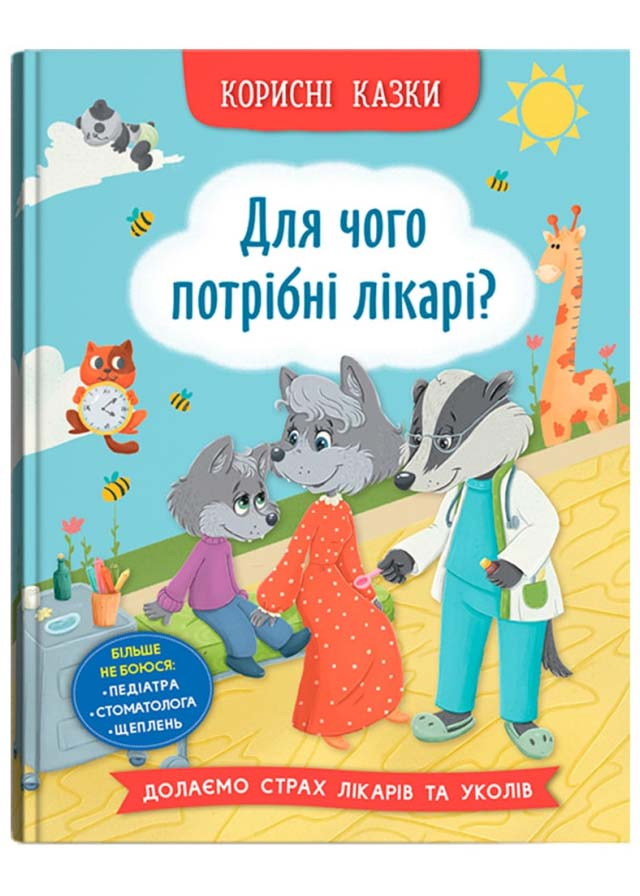 Ця книжка не звичайна, вона повчальна. Ти знайдеш у ній історії про звірят, які не хотіли відвідувати лікарів та робити щеплення, навіть коли хворіли на застуду чи болів зуб. Утім наші герої вчасно зрозуміли, що лікарів боятися не слід, адже вони допомагають нам бути здоровими. Хочеш дізнатися, як їм це вдалося? Розгортай книжку й читай казки про звірят, які зрозуміли, для чого потрібні лікарі та щеплення й подолали свій страх перед ними.