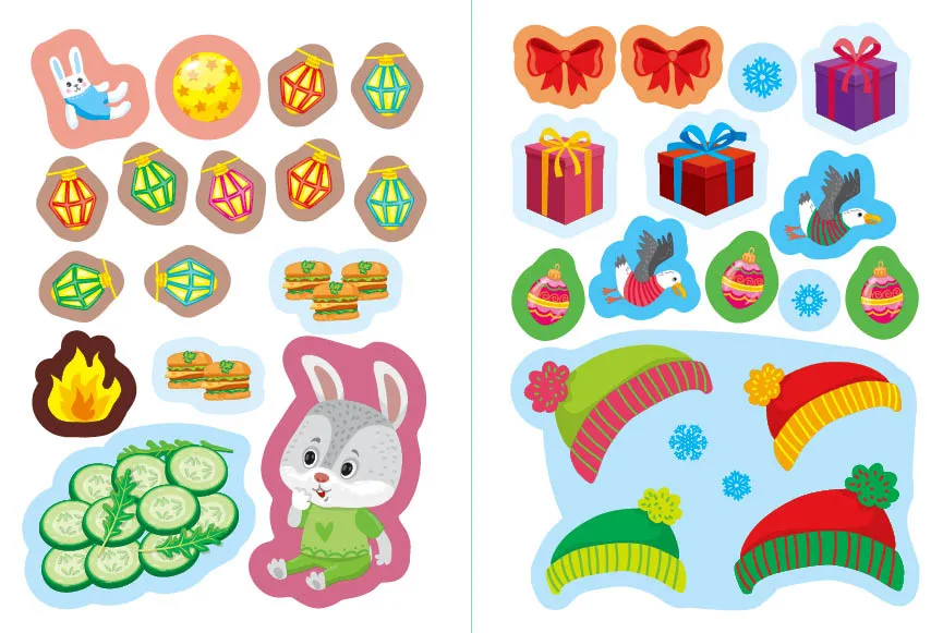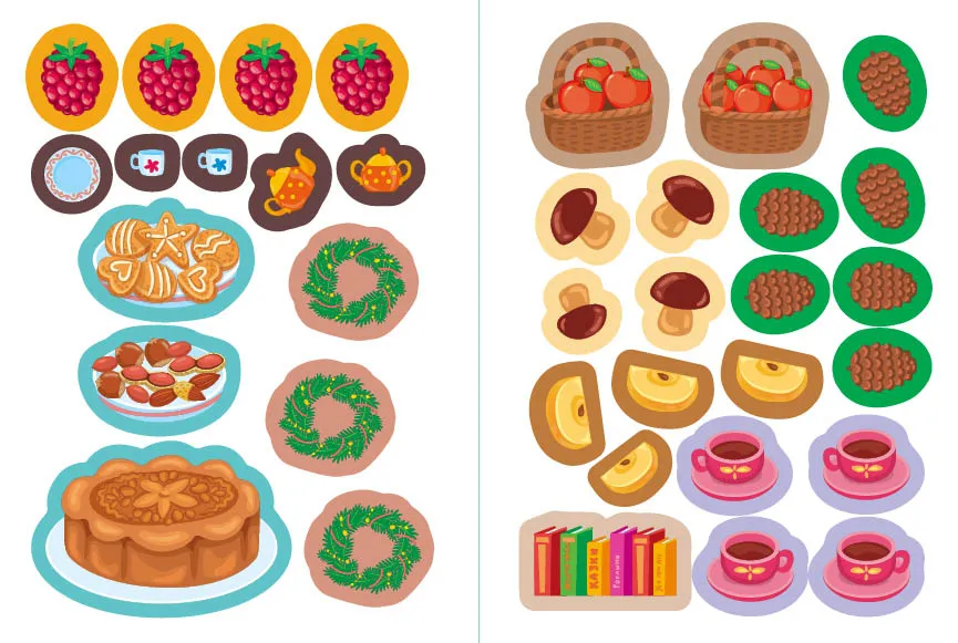 - Святкові смаколики: Ця книжка запрошує маленьких читачів у світ різноманітних святкових ласощів. Виконуючи прості завдання та прикрашаючи сторінки наліпками, діти зможуть втілювати свої ідеї у життя. Книжка також сприяє розвитку мовленнєвих навичок та творчого мислення, що робить її відмінним інструментом для спільного навчання.