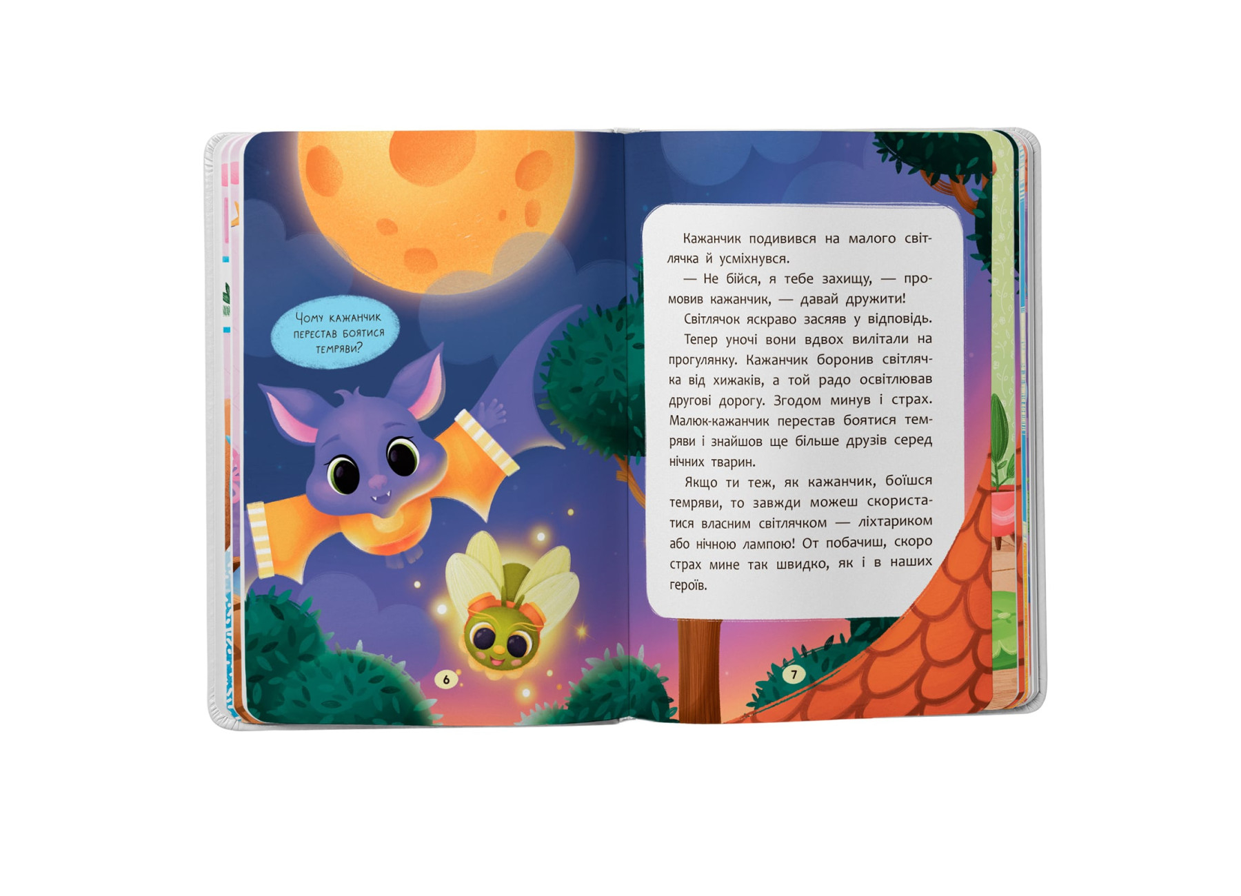 Ця книга стане чудовим другом вашій дитині у подоланні страхів. Завдяки цікавим історіям та милим героям, вона покаже, як визначити, що саме лякає, і як з цим впоратися. Разом із героями малюк навчиться краще розуміти свої емоції, знаходити сміливість, розвивати впевненість у собі та почуття безпеки.