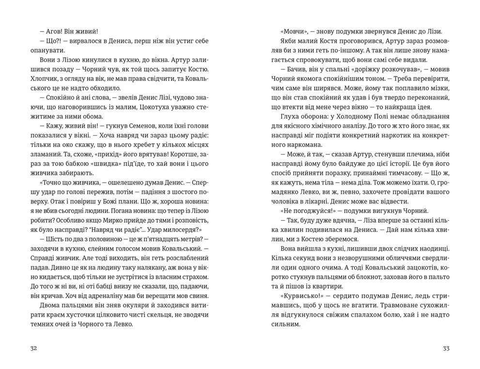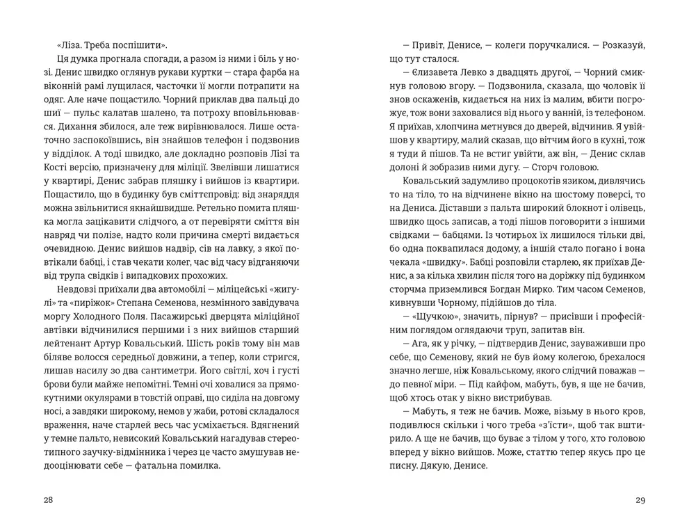 - Сильні персонажі – слідчі Денис Чорний і Артур Ковальський, які намагаються розплутати криваву загадку