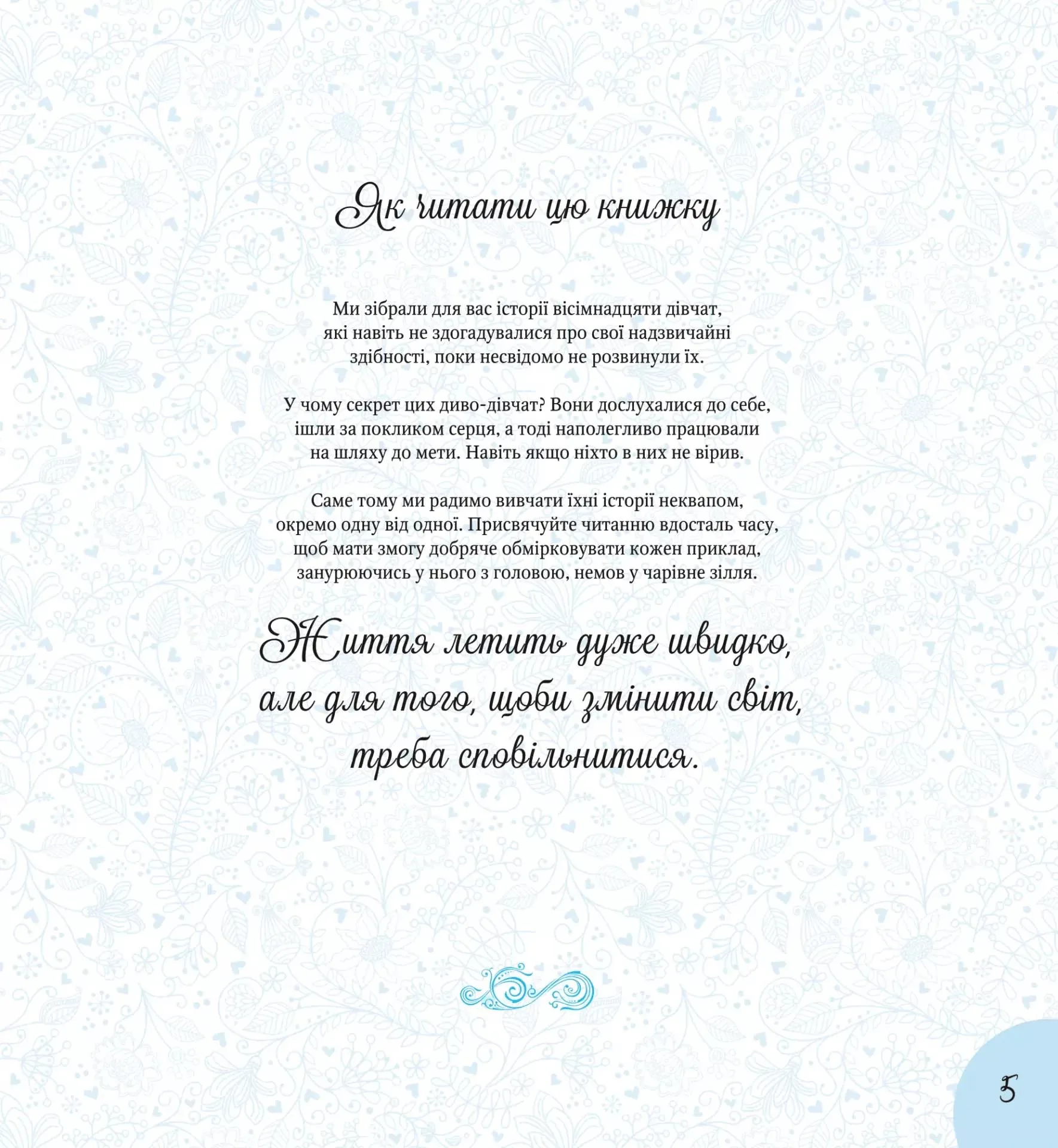 Ця ілюстрована книга біографій відкриває перед читачами світ науки, мистецтва, спорту та боротьби за рівні права. Завдяки прикладу кожної героїні, читачі розуміють, що віра у власні сили та наполегливість здатні вести до великих змін.