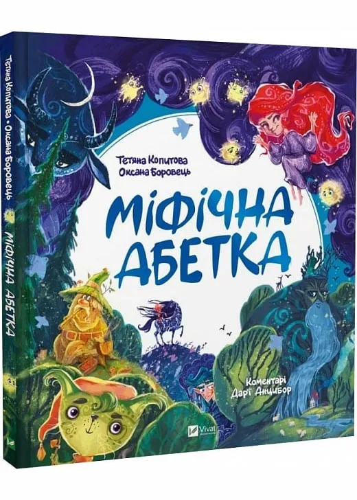Міфічна абетка — це захоплива віршована книжка, яку створила авторка Тетяна Копитова. Книга знайомить дітей з літерами української абетки через образи чарівних персонажів народної міфології. В ній оживають загадкові створіння — від Хухи та Злиднів до Болотяника та веселої бабусі на мітлі. Кожна літера — це зустріч з новим героєм, який живе у лісах, водоймах або супроводжує стихії природи.