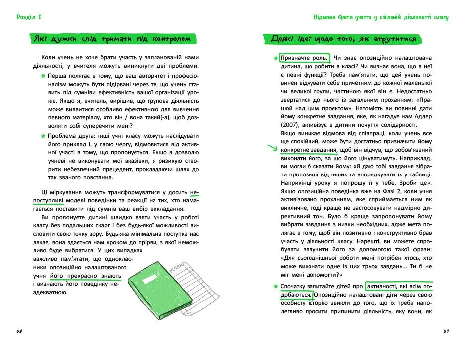 - поради щодо співпраці з батьками та колегами.