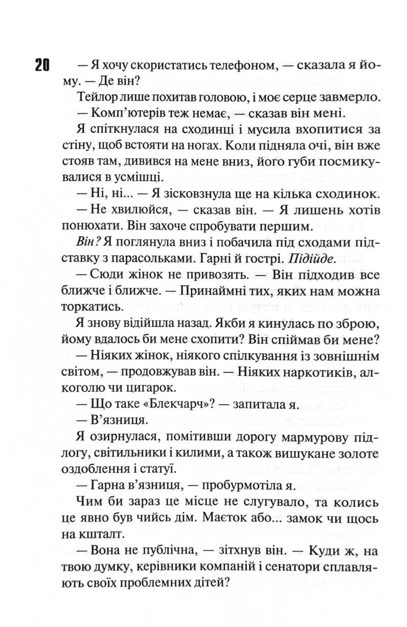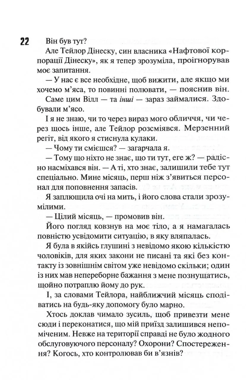 У особняку утримуються п'ятеро молодиків. Отже, Вілл — лише один з викликів, з якими мусить впоратися Еморі. Цей сюжетний хід створює підґрунтя для багаторівневої психологічної гри, яка тримає в напрузі до останньої сторінки. Атмосфера напруги, гніву і спокути переплітається з особистими драмами. Тікати нікуди, а вибудовування відносин у таких умовах — не просто виклик, а боротьба з власною сутністю.