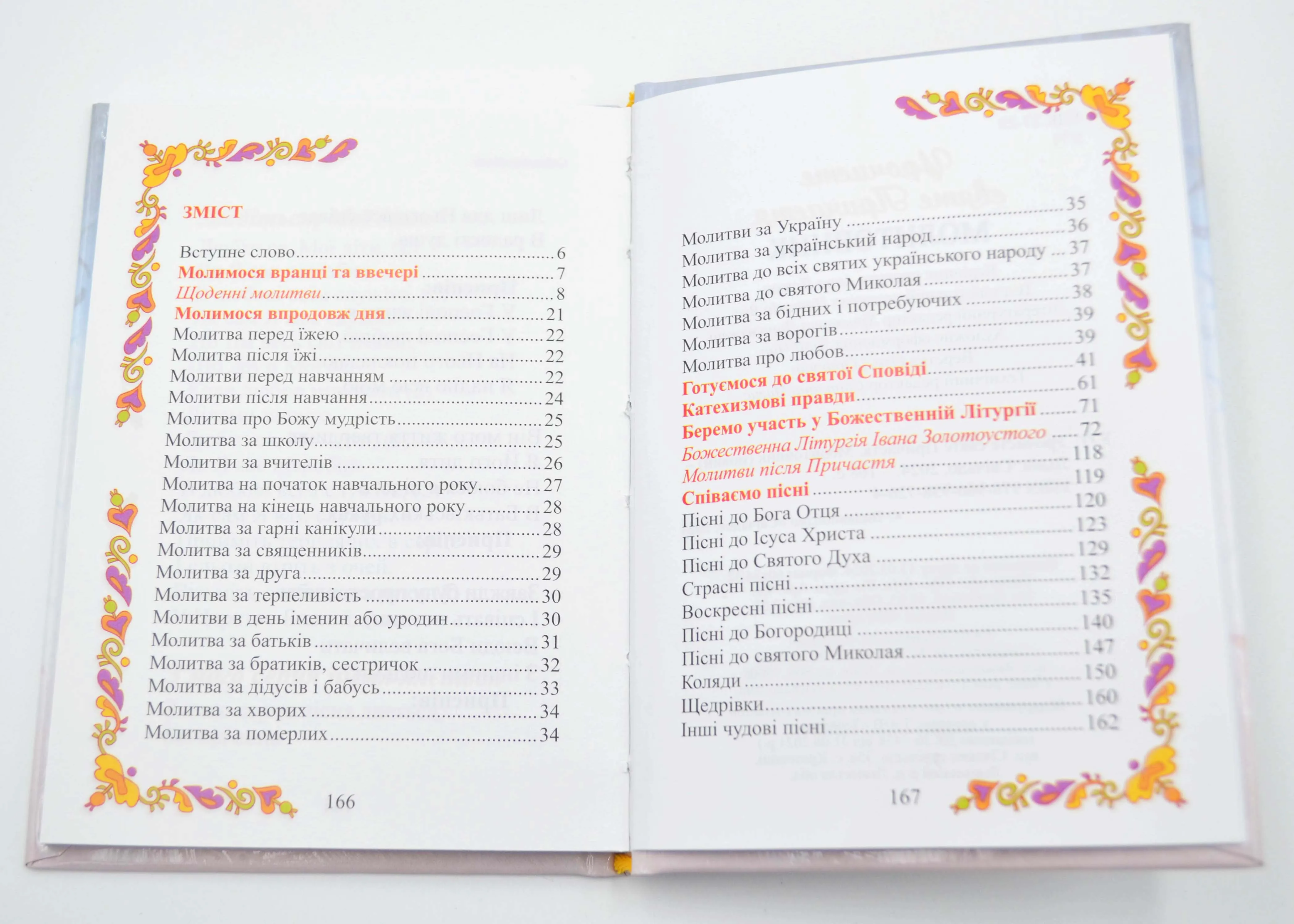 Також молитовник містить тексти Божественної Літургії Йоана Золотоустого, катехизмові правди, християнські пісні, коляди й щедрівки, а головне – дуже важливий розділ про те, як підготуватися до Сповіді та як вона відбувається.