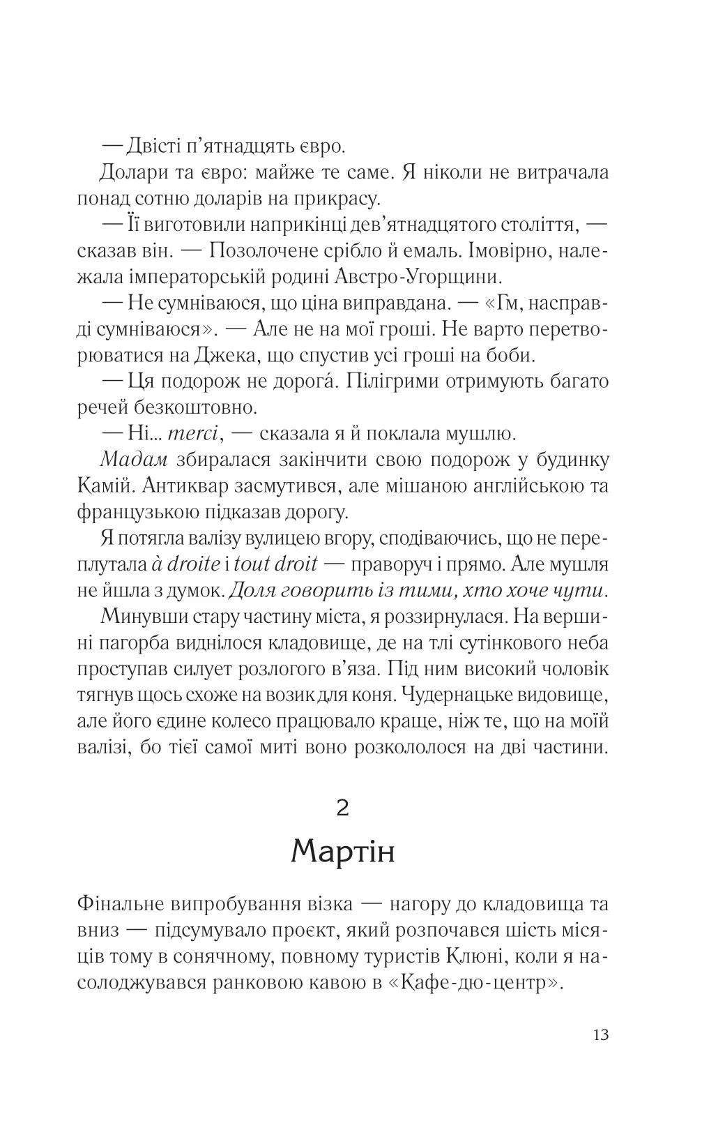 Роман Два кроки назустріч відомого австралійського письменника Сімсіон Ґрема — це історія про другий шанс, пошук себе та силу людських почуттів. Після втрати чоловіка головна героїня Зої вирішує кардинально змінити своє життя. Вона залишає Лос-Анджелес і вирушає до Франції, у містечко Клюні, де починає свою мандрівку паломницьким маршрутом Каміно-де-Сантьяґо.