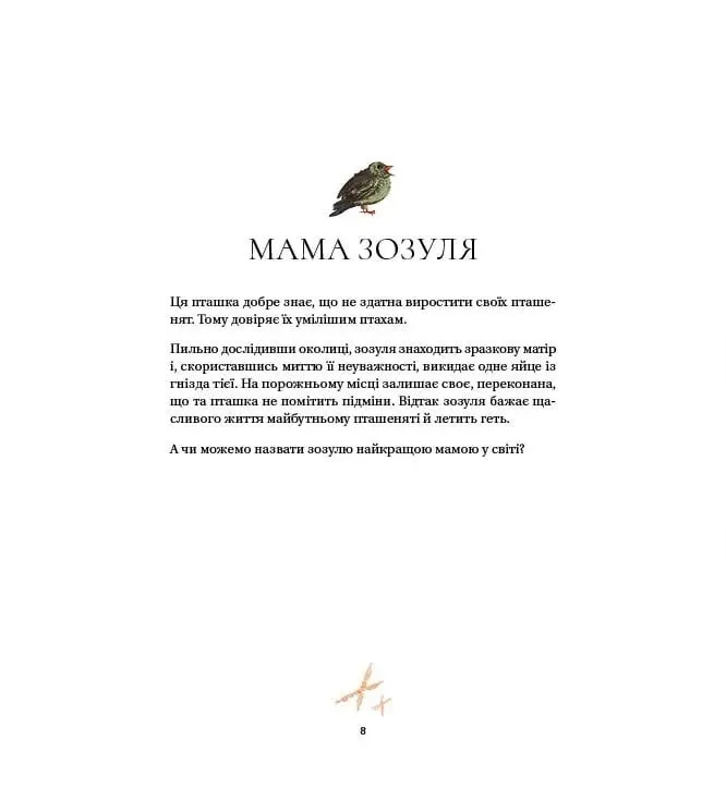 Якою повинна бути найкраща мама у світі? На це запитання шукає відповідь не лише дитина, а й кожен дорослий, гортаючи сторінки цієї захопливої історії. Чи може мамою бути павучиха, тигриця, слониха або навіть зозуля? Кожна з них піклується про свою дитину по-своєму, але їх об’єднує любов і турбота. Саме ці цінності пронизує вся книга.