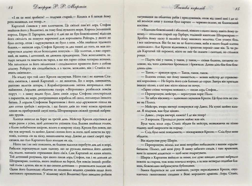 Сага "Пісня льоду й полум'я" надовго засіла в головах любителів Гри престолів. "Битва королів" - друга книга циклу. Так як людство та інші жителі Семи королівств продовжують своє існування, завжди знайдуться ті, хто буде боротись за Золотий трон. Зради, жорстокі битви, жахливі смерті, хаос та руїни, усе це - невід'ємна частина того світу, який описаний в цій книзі.