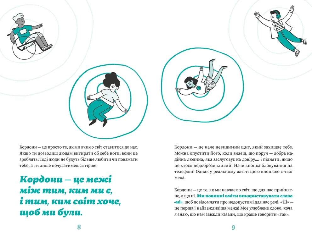 З дитинства нас навчають бути ввічливими, але недостатньо розповідають, як при цьому зберігати себе. Книга допомагає підліткам навчитися поважати власні потреби, протистояти небажаним дотикам, коментарям чи тиску з боку оточення. Авторка, сертифікований лайф-коуч Мішель Елман, легко і доступно пояснює, як відстоювати себе у школі, вдома, серед друзів та в онлайн-середовищі.