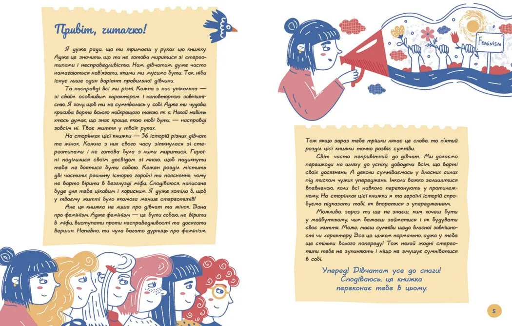 Книжка Це дівчача справа! вчить критично мислити, підтримувати інших і ставитися до гендерної рівності як до базової складової розвитку суспільства. Вона допоможе кожній дівчинці відчути свою цінність і визначити своє місце у світі без страху бути собою.