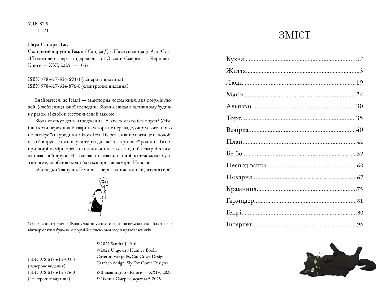 Книга Солодкий дарунок Гемлі — це захоплива історія для дітей від талановитої авторки Сандри Дж. Паул. Вона започатковує нову серію книжок, де головною героїнею є кмітлива і дуже добра чорна киця Гемлі. Це твір про дружбу, взаємодопомогу та віру в добро, що припаде до душі як малим, так і дорослим читачам.