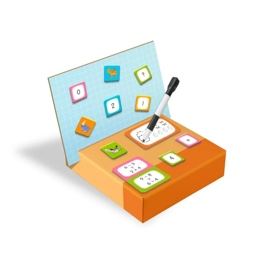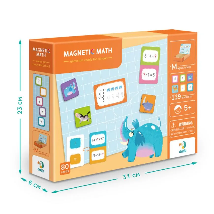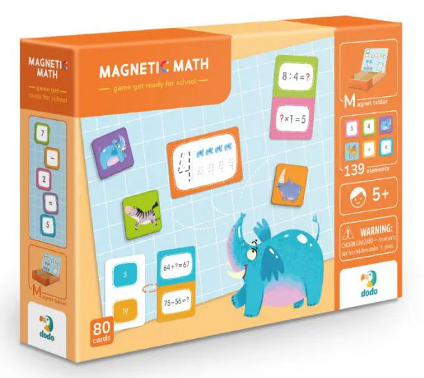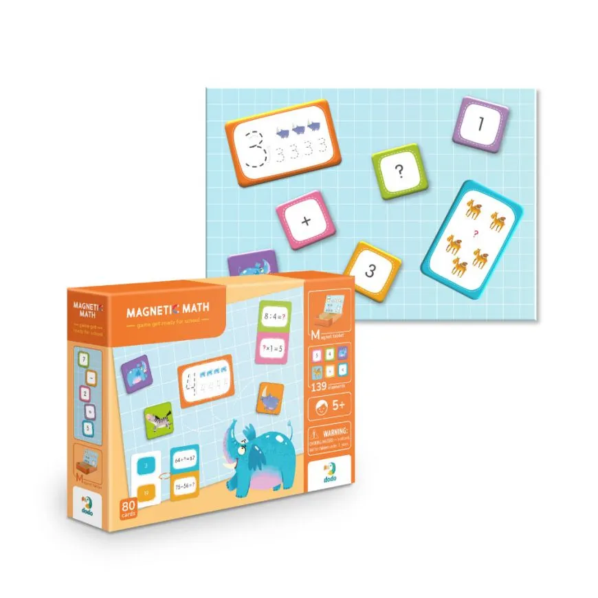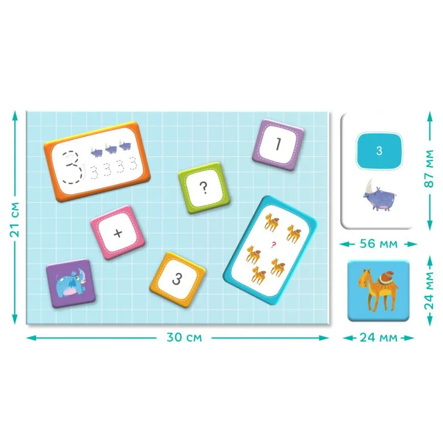 Вивчаємо математику з яскравими магнітами. У грі “Магніти Математика” — магнітна планшетка, підставка під неї, картки для навчання, магнітні елементи з цифрами, тваринками та прикладами. Це ж подвійна користь — дитина весело проводить час і вчиться рахувати швидко. Можна гратися не тільки з картками, а ще вчитися писати, чи додавати побудову прикладів з магнітів.