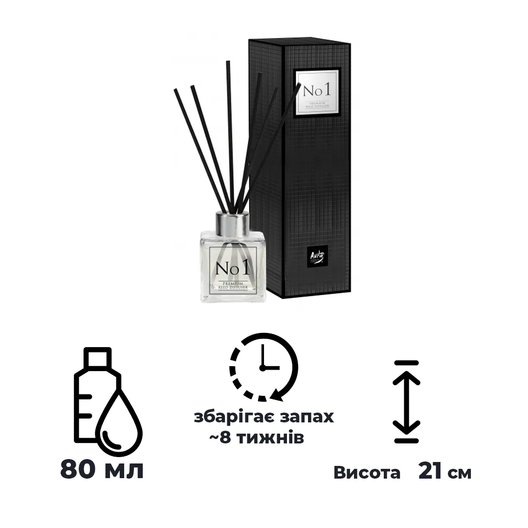 Ароматичний дифузор "Bispol" з запахом №1 - це простий та сучасний спосіб наповнити вашу оселю приємним ароматом. Окрім того, дифузор стане вишуканим елементом інтер’єру. Аромат №1 поєднує в собі деревні нотки з ваніллю. У комплект входять флакон із ефірною олією та набір із 6 чорних целюлозних паличок. Завдяки свої пористій структурі, вони вбирають ароматичну олію, поширюючи запах у приміщенні. Чим більше паличок у флаконі, тим сильнішим буде аромат.