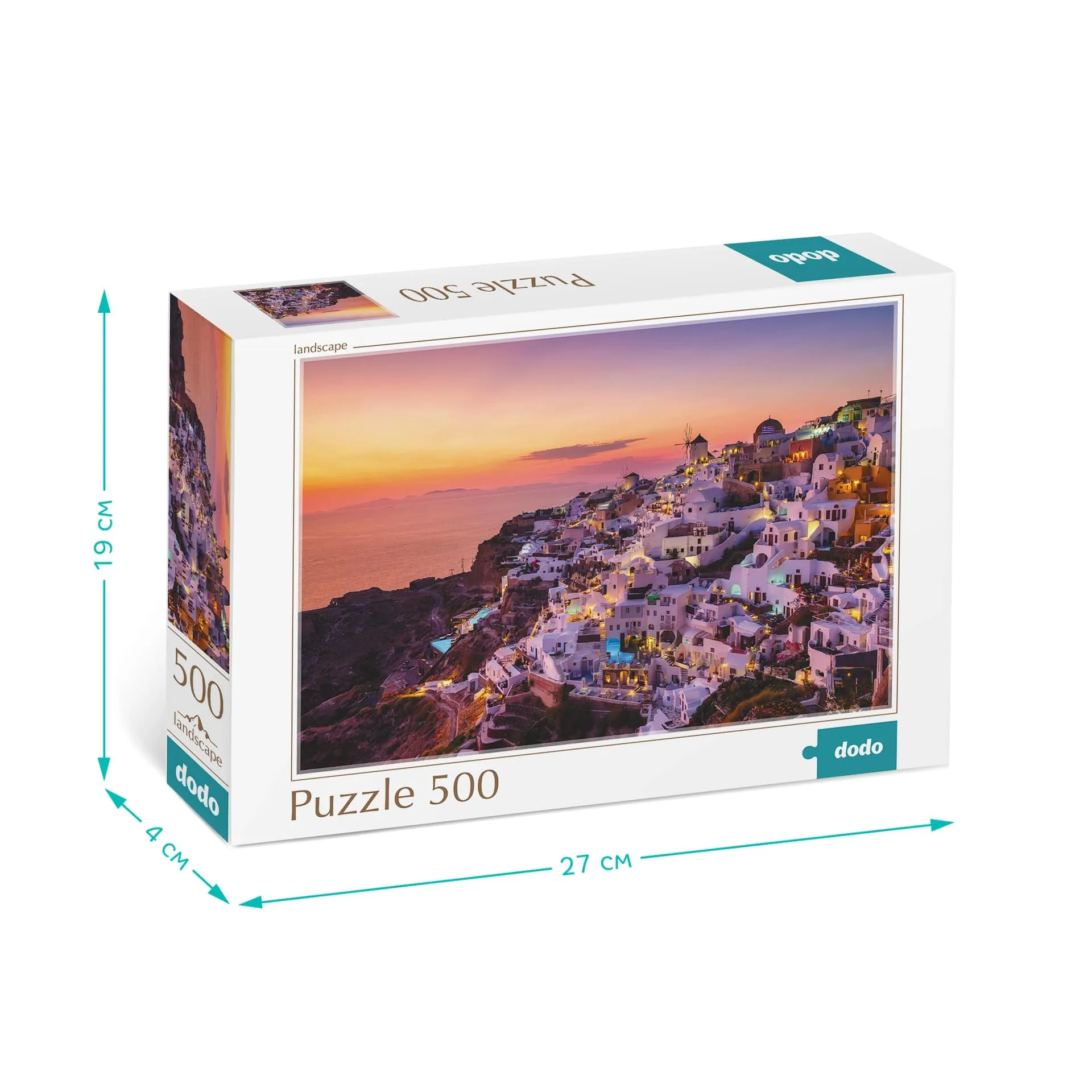 Фото прибережного грецького містечка Ія, що на острові Санторіні, вже на нашому новому пазлі. Панорама білих будівель, засіяних типовими для країни різнокольоровими дахами, захоплює подих з перших хвилин. А ці неймовірні заходи сонця не зрівняються своєю красою ні з чим у світі.Пазл поділений на 500 елементів та виконаний з якісного картону. Ідеально підійде для спільного складання всією родиною.
