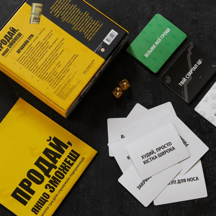 Розвиньте свої творчі здібності та навчіться продавати ідеї з нашою настільною грою. Придумуйте геніальні концепти, змагайтесь з друзями та розвивайте ораторські здібності. Ця гра підійде для будь-якої компанії і може бути корисною для тих, хто хоче розвиватися як підприємець, або просто провести час з близькими та весело провести час.