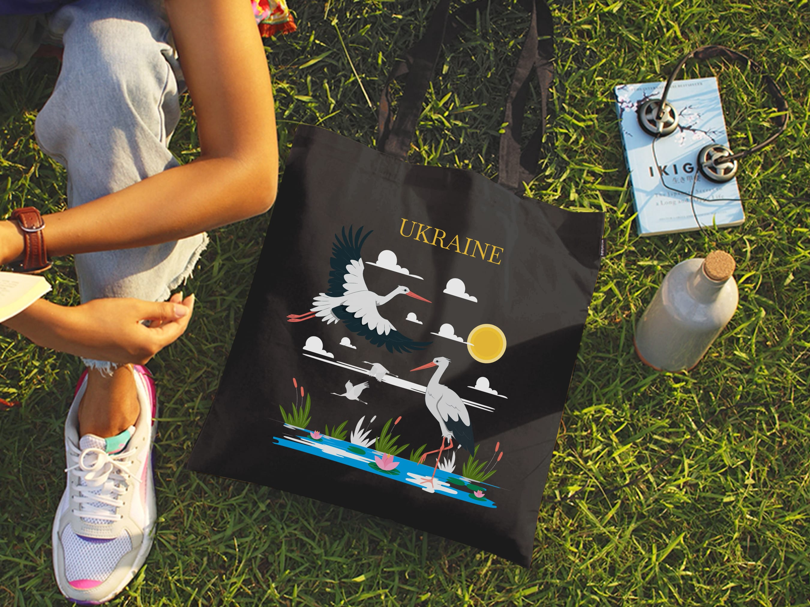 Екошопер BookOpt Ukraine Журавлі Символ щастя чорний (ВК4065)