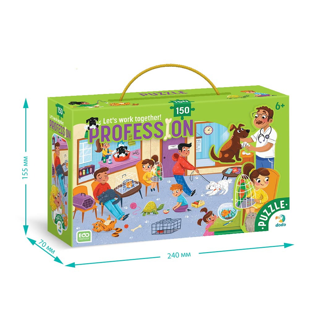 Цей пазл — чудовий спосіб розвинути дрібну моторику, логічне мислення та уважність вашої дитини. В процесі складання пазлу дитина дізнається більше про професію ветеринара та побачить, як відбувається лікування тварин.