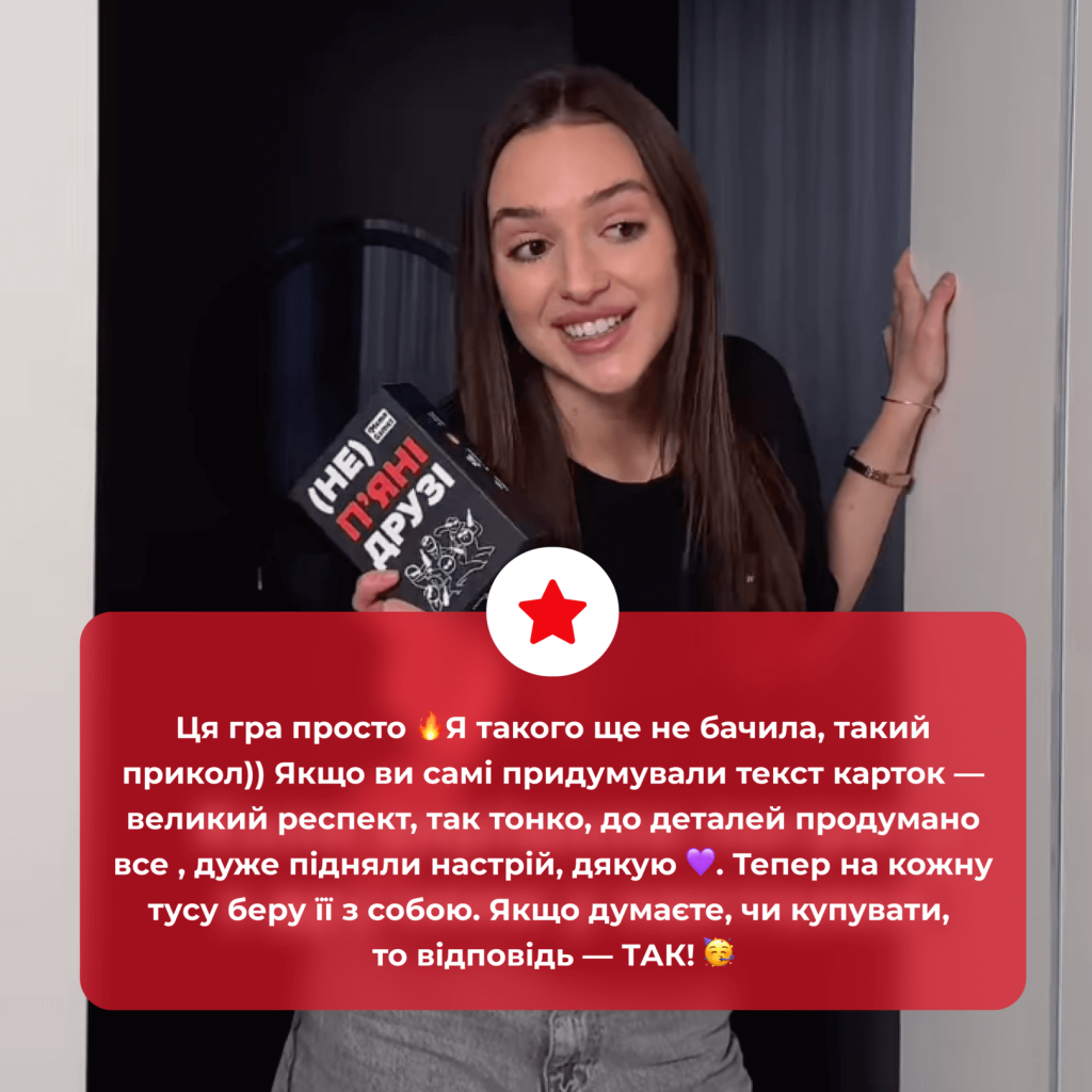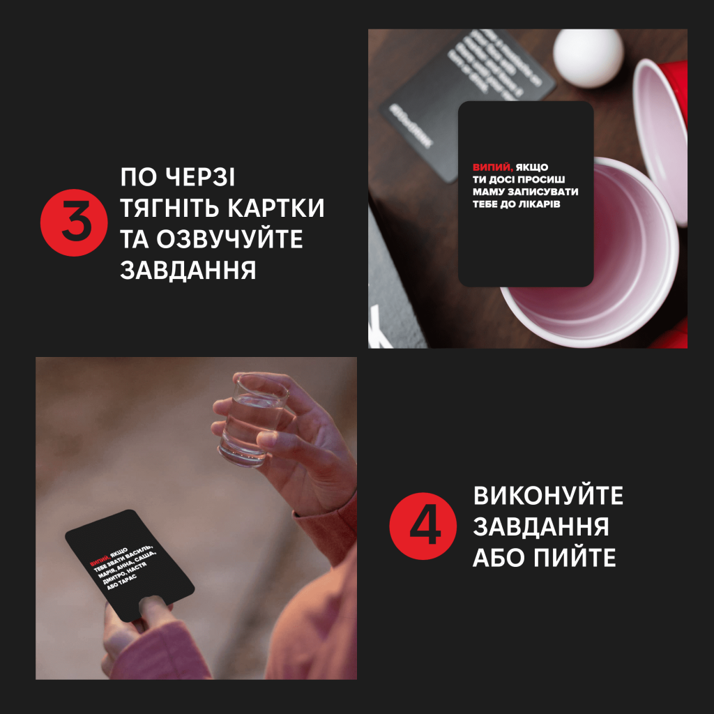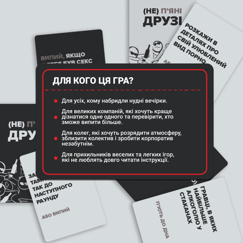 Відкрийте гру, виконуйте завдання та створюйте незабутні спогади разом! Замовляйте "(Не) п’яні друзі" і зробіть кожну зустріч справжнім святом.