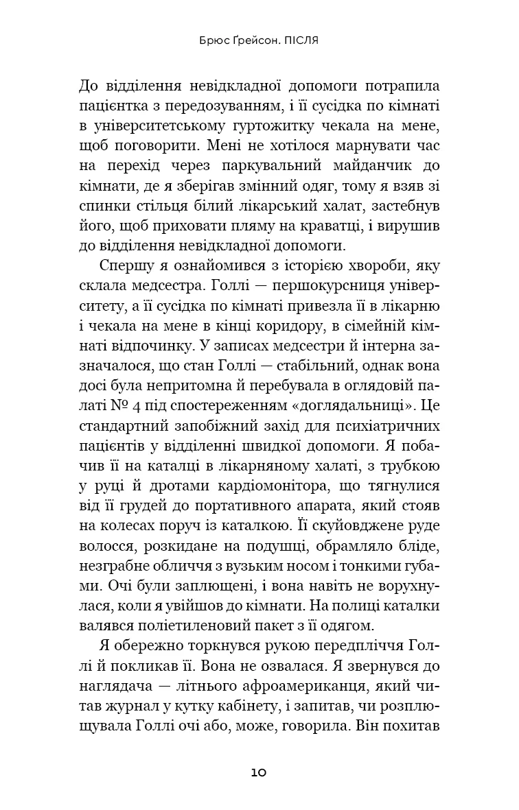 Книга Після. Що видно крізь щілину між життям і смертю — робота відомого психіатра Брюса Ґрейсона, яка відкриває читачеві новий погляд на природу смерті та процес помирання. Автор, який має медичну освіту і не пов’язаний із релігійними доктринами, систематично досліджує феномен передсмертного досвіду на основі наукових спостережень та інтерв’ю з пацієнтами.