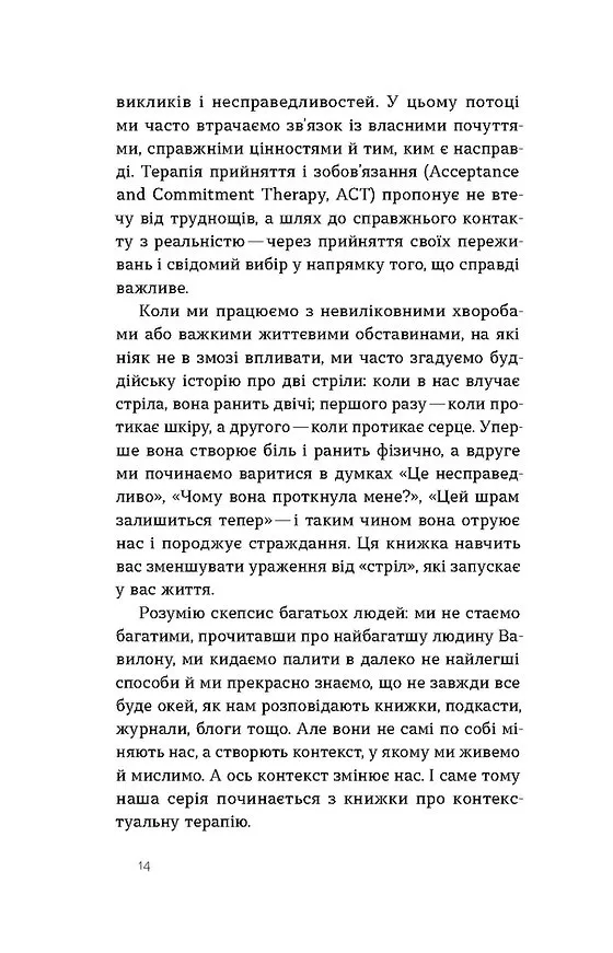 Навчаючись терапії прийняття і зобов’язання, автори пропонують покроковий план дій. Кожен розділ містить практичні поради, що допоможуть застосувати набуті знання у повсякденному житті. Ви ознайомитеся з реальними історіями тих, хто поборов труднощі та знайшов новий сенс життя.