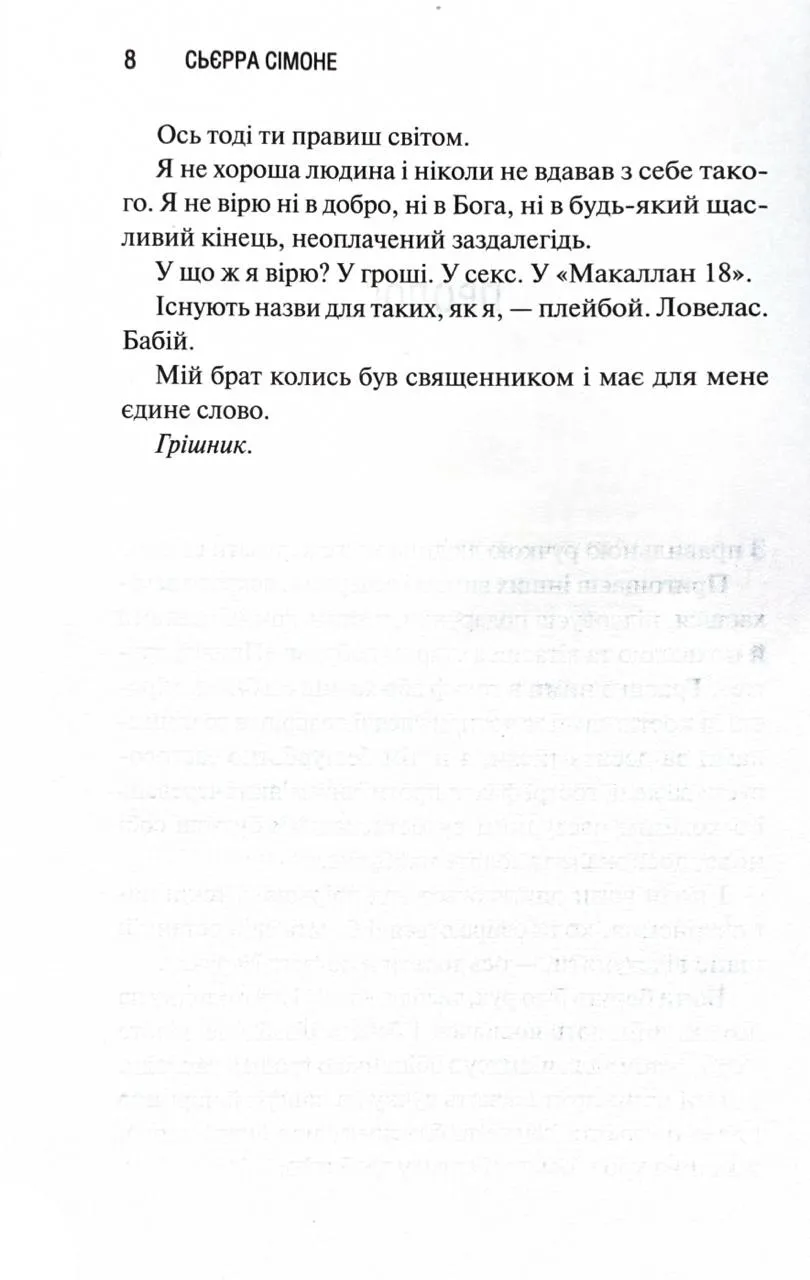 Грішник. Священник. Книга 2 — це продовження захопливої історії, яка зачаровує своєю відвертістю, емоційною глибиною та моральними викликами. Авторка Сьєрра Сімоне, відома своїми пристрасними романами, переносить читача у світ внутрішніх протиріч і заборонених бажань.
