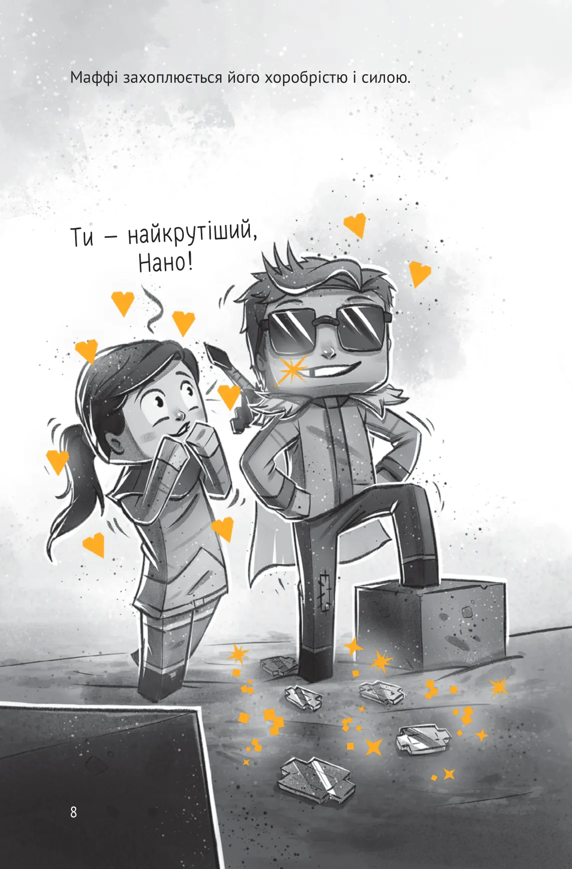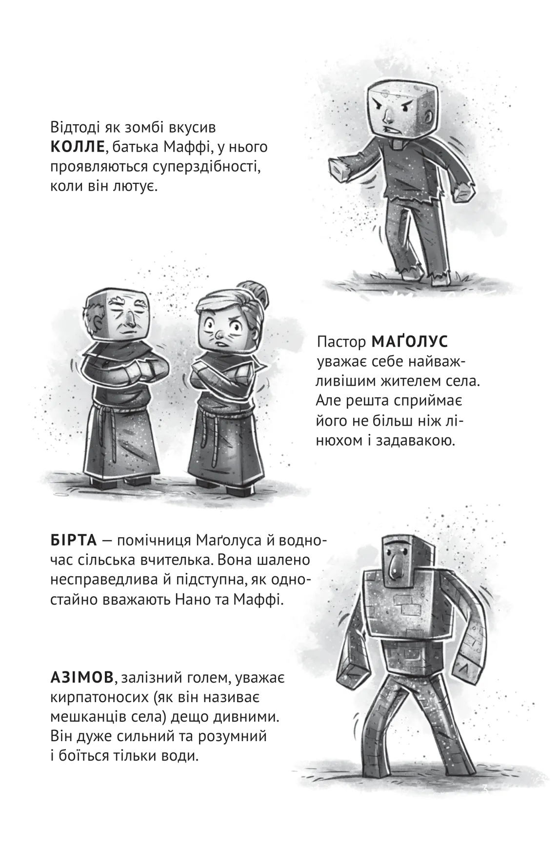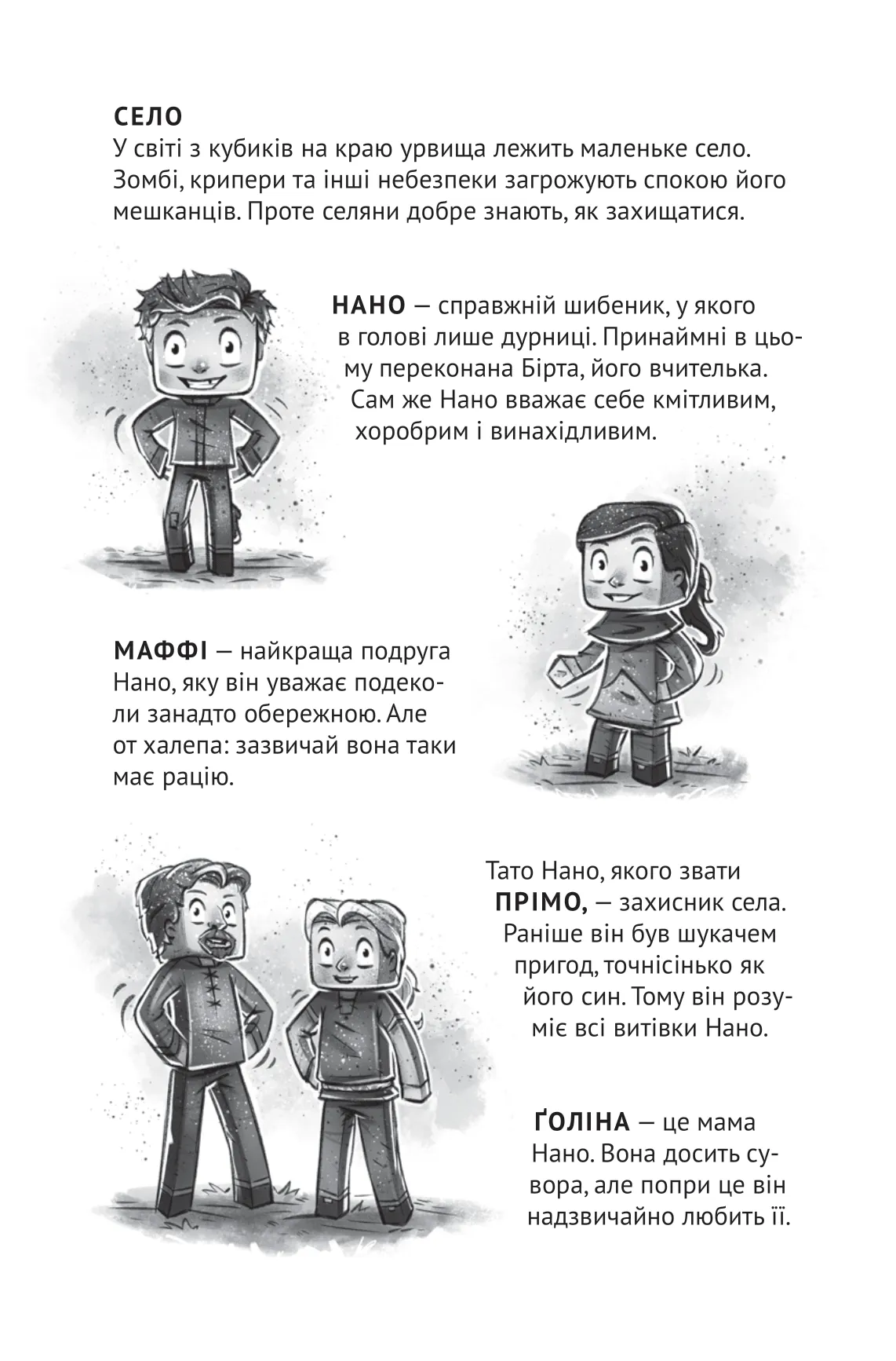 Друга книга серії про Нано і Маффі — Село. У пастці Нижнього світу — продовжує захопливу подорож героїв у фантастичному світі Minecraft. Автор Карл Ольсберґ разом із художником Філіпом Ахом створює яскраву дитячу історію, що поєднує пригоди, гумор і натяк на небезпеку, з якою стикаються персонажі в знайомому, але водночас загадковому світі піксельного Всесвіту.