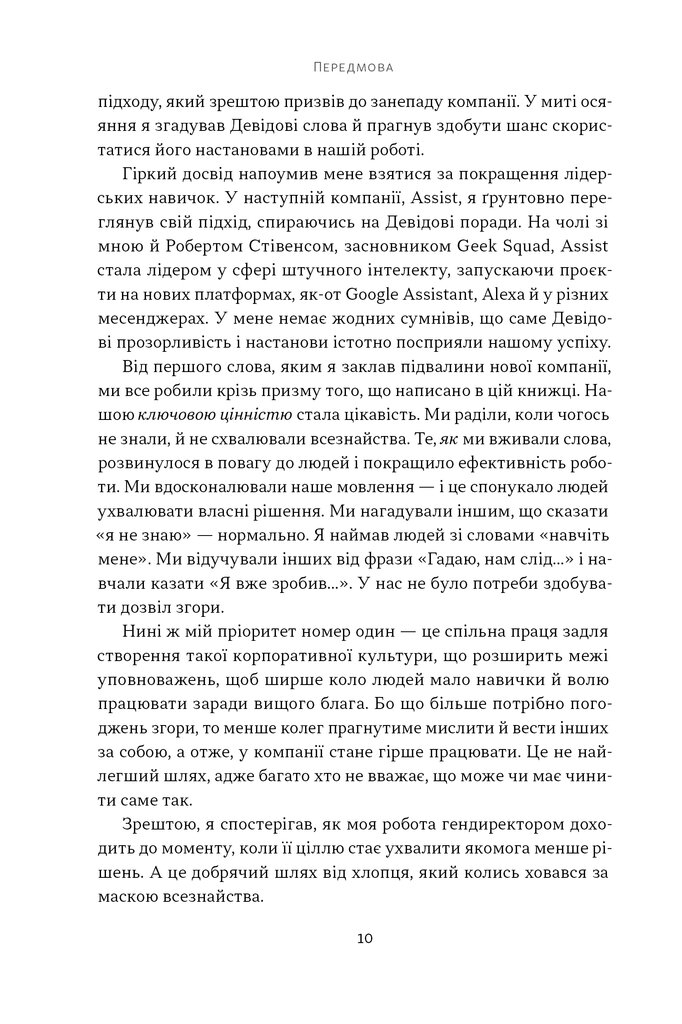 Книга Мова лідерства від Девіда Марке — практичний посібник для керівників, менеджерів та лідерів команд, які прагнуть досконалості в управлінні через правильно побудовану комунікацію. Автор, колишній капітан ВМС США і фахівець з командного лідерства, доводить, що мова має надзвичайне значення в робочих процесах. Невдале формулювання може демотивувати співробітників, збільшити тривожність і знизити продуктивність. Саме тому комунікації є важливою складовою успішного управління.