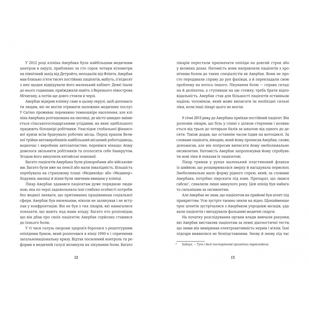 Книга Евана Г’юза базується на справжніх подіях. Вона демонструє, як жадоба до прибутку та відсутність етики здатні зруйнувати людські долі та перетворити медицину на поле для махінацій. У центрі сюжету — не тільки підприємці, а й справжні жертви опіоїдної кризи в США.