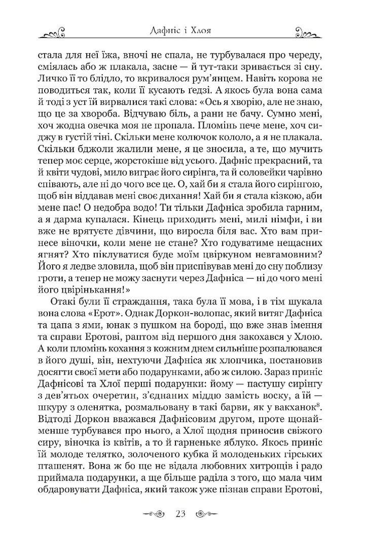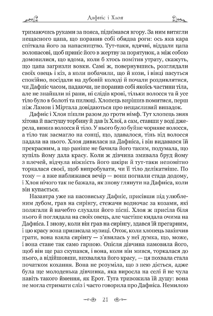 Дафніс і Хлоя — книга, яка приваблює і юних, і дорослих, відкриваючи для кожного свою унікальну грань кохання, вірності та краси світу.