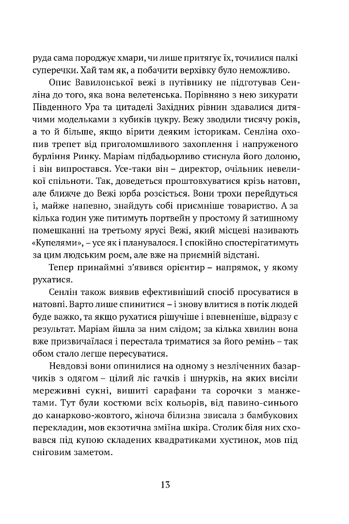 Після загадкового зникнення дружини Сенлін потрапляє в глибини Вавилонської вежі — насиченого варіативними рівнями світу, де кожен поверх приховує нову небезпеку, дивовижних мешканців та соціальні і моральні випробування. Пошук Маріам змушує героя йти далі, не зупинятись перед труднощами й не боятися відкривань. Книга сповнена символізму, філософських роздумів та тонко змальованих емоційних трансформацій героя.