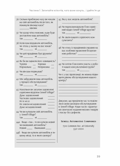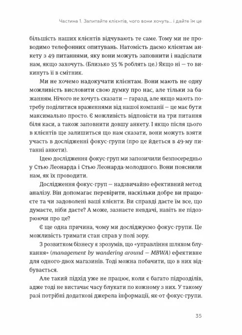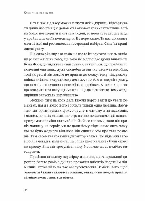 Одна з ключових ідей книги — постійний діалог із клієнтами, розуміння їхніх бажань і потреб. Завдяки своєму підходу, Карл Сьюелл зумів не лише втримати клієнтів, а й значно збільшити прибутки свого бізнесу.