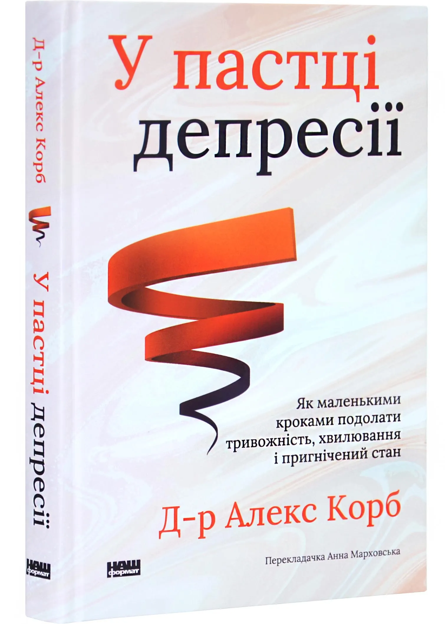 Книга У пастці депресії. Як маленькими кроками подолати тривожність, хвилювання і пригнічений стан — це практичний посібник для тих, хто бореться з депресією, тривожністю та пригніченим настроєм. Її автор — Алекс Корб, нейробіолог та фахівець у сфері роботи мозку, пропонує читачам перевірені стратегії психологічного відновлення, засновані на сучасних наукових дослідженнях.