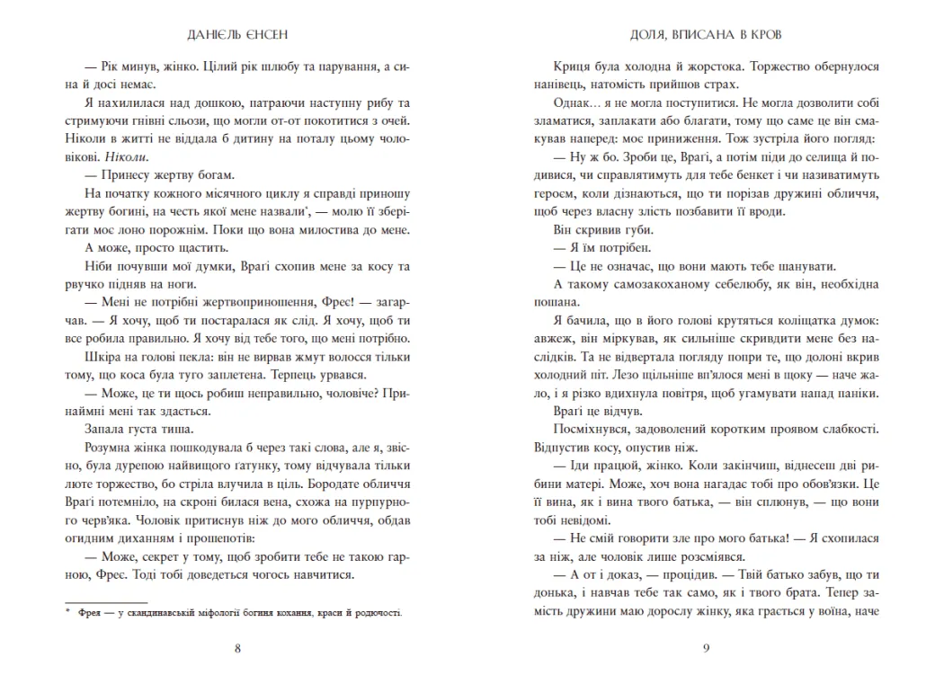 У цьому фентезійному романі на читача чекає потужна суміш міфології, забороненого кохання, боротьби за владу та магії. Головна героїня — Фрея, яка змушена пройти складний шлях: із забитої дружини до могутньої воїтельки з божественним корінням.