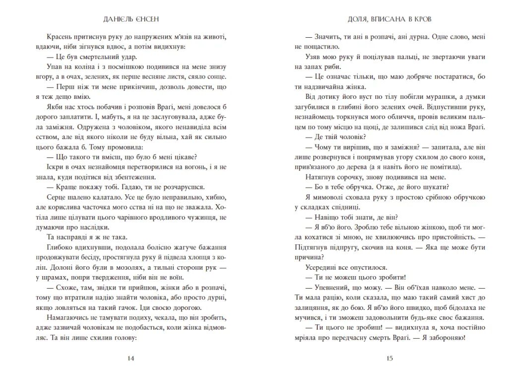Книга Сага про невиткані долі. Доля, вписана в кров від автора Єнсен Данієль стала справжнім бестселером. За версією ELLE і вибором редакції Amazon, це одна з найкращих книжок року. Понад 90 тисяч схвальних відгуків на Goodreads підтверджують її популярність серед читачів у всьому світі.