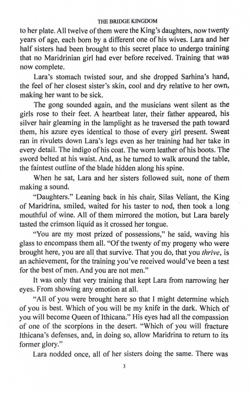 The Bridge Kingdom is the only route through a storm-ravaged world, and it uses its power to deprive Lara's homeland of vital resources. So when she's sent to be King Aren's bride, Lara will do whatever it takes to bring down the kingdom's defences, even if it means seducing her new husband.