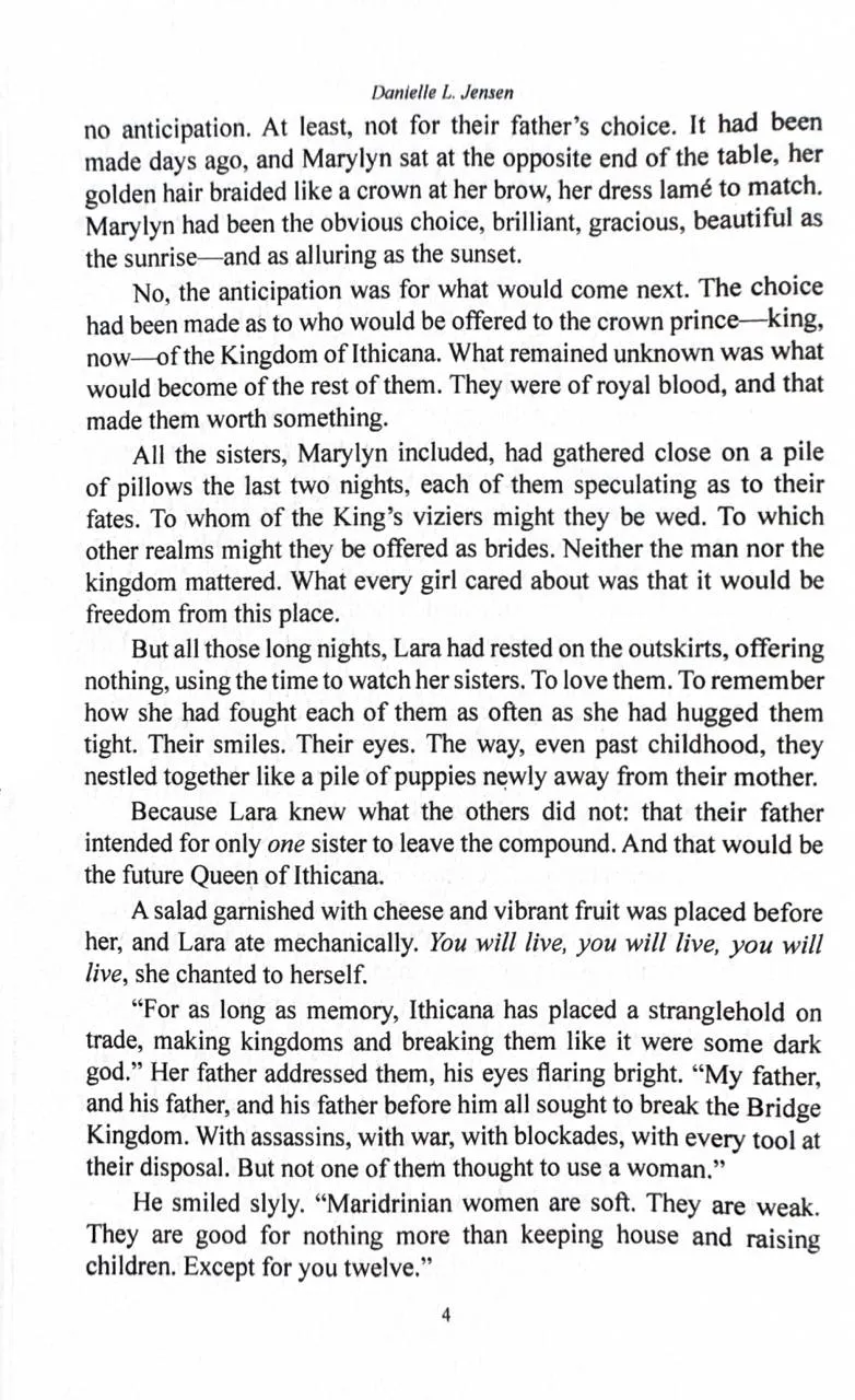 Королівство Мосту — єдиний шлях через світ, спустошений бурями, і воно використовує своє становище, щоб позбавляти батьківщину Лари життєво необхідних ресурсів. Тому коли її надсилають стати дружиною короля Арена, Лара готова на все, аби зруйнувати захист королівства — навіть якщо доведеться спокусити власного чоловіка.