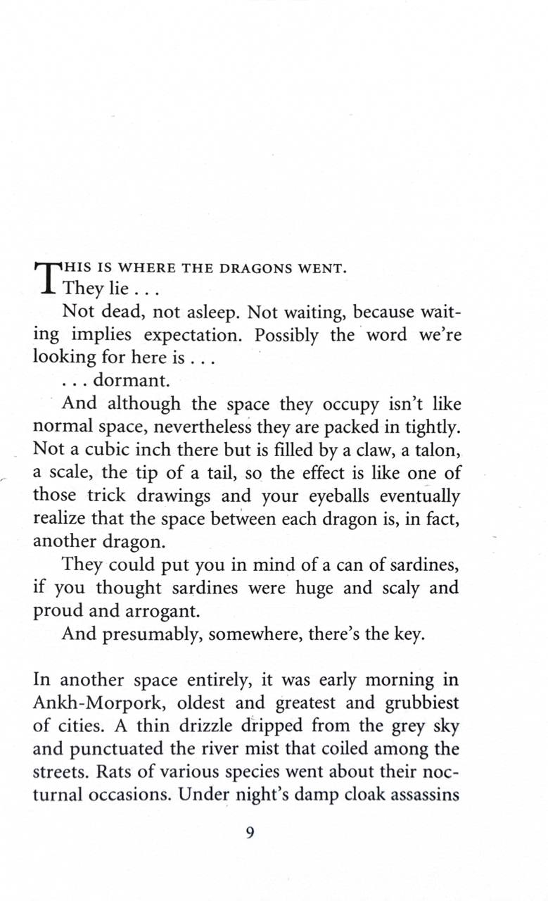 This is where the dragons went. They lie . . . not dead, not asleep, but . . . dormant. And although the space they occupy isn't like normal space, nevertheless they are packed in tightly. They could put you in mind of a can of sardines, if you thought sardines were huge and scaly. And presumably, somewhere, there's a key . . .