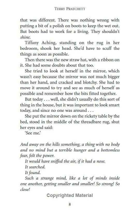 But when a sinister creature starts pursuing her, Tiffany realises that she’ll need her magic more than ever to fight it off. And this time, neither Mistress Weatherwax (the greatest witch in the world) nor the fierce, six-inch-high Wee Free Men can protect her. In the end, it will take all of Tiffany's inner strength to save herself.