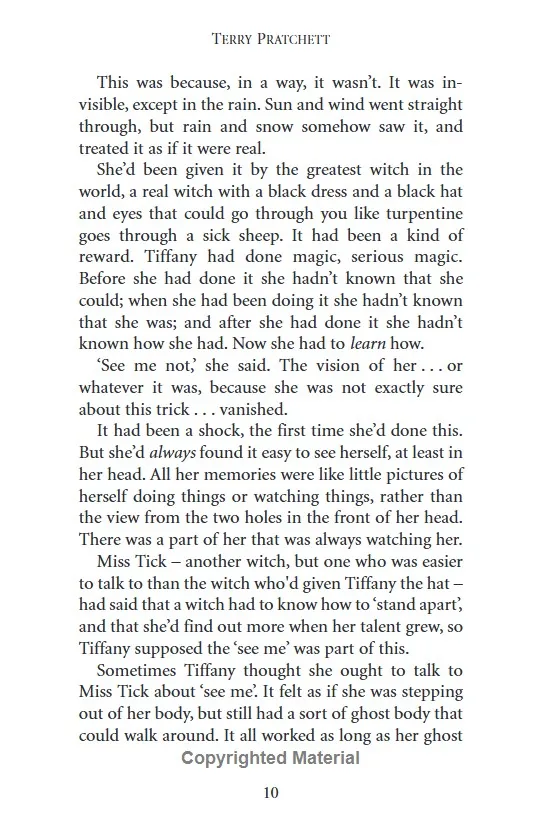 Tiffany Aching is ready to begin her apprenticeship in magic, but life isn't exactly what she thought it would be. She expects spells and magic – not chores and ill-tempered goats! Surely there must be more to witchcraft than this?