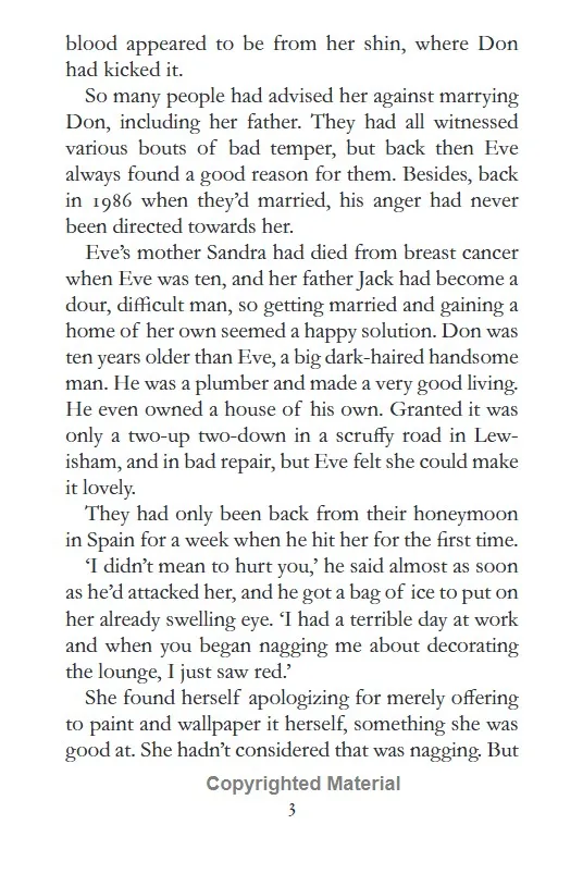 Eve should never have married Don Hathaway. He is a bully. Worse than that, he hurts her.But, after one drunken rage too many, she has the courage to leave him. It's a difficult path, yet she needs to give her children hope for the future.Don, however, is bitter. And getting away entirely from him proves impossible.Until the day, Eve tries to teach him a lesson - and it all goes horribly wrong.Eve loves her children but now she carries a terrible burden that she dares not share. Has she betrayed her and her children's futures?