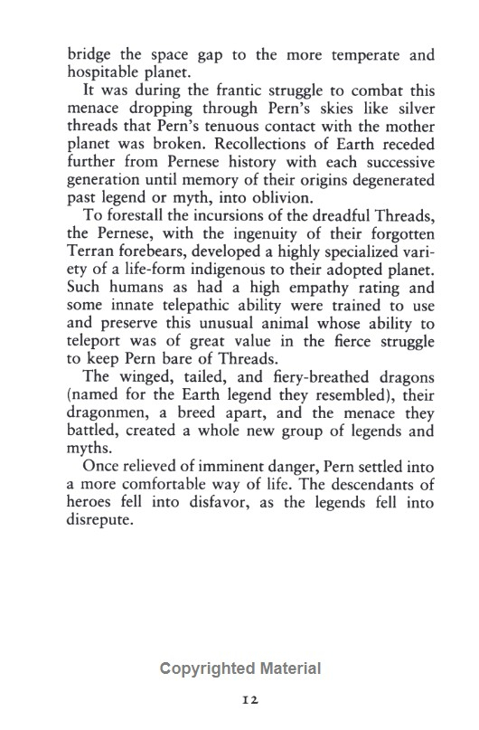 «Книги Енн Маккефрі про Перн назавжди змінили уявлення читачів про драконів — не просто страшні створіння, яких треба знищити, а воїни-партнери, пов’язані з людьми… книги, що сформували не одне покоління письменників фентезі.»