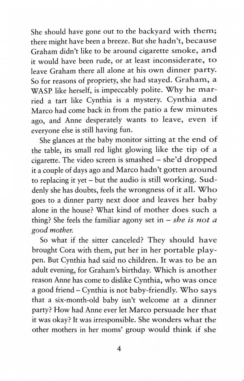 'Meticulously crafted and razor-sharp. THE COUPLE NEXT DOOR lingers long after you turn the final page' HARLAN COBEN***The fast-paced, addictive No. 1 Sunday Times bestseller. Over one million copies sold.***PEOPLE ARE CAPABLE OF ALMOST ANYTHING.You never know what's happening on the other side of the wall.Your neighbour told you that she didn't want your six-month-old daughter at the dinner party. Nothing personal, she just couldn't stand her crying.Your husband said it would be fine. After all, you only live next door. You'll have the baby monitor and you'll take it in turns to go back every half hour.Your daughter was sleeping when you checked on her last. But now, as you race up the stairs in your deathly quiet house, your worst fears are realized. She's gone.You've never had to call the police before. But now they're in your home, and who knows what they'll find there.What would you be capable of, when pushed past your limit?