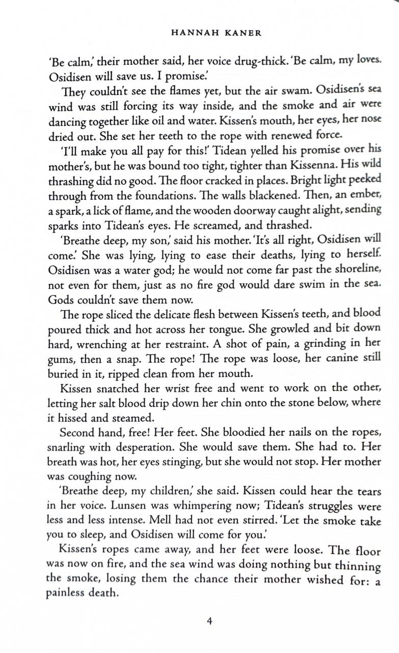 Кіссен втратила родину через фанатиків, що служили вогняному богу.