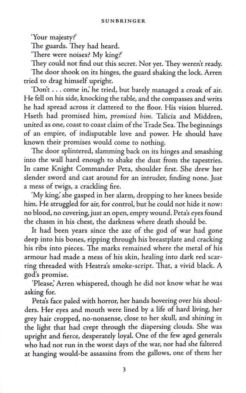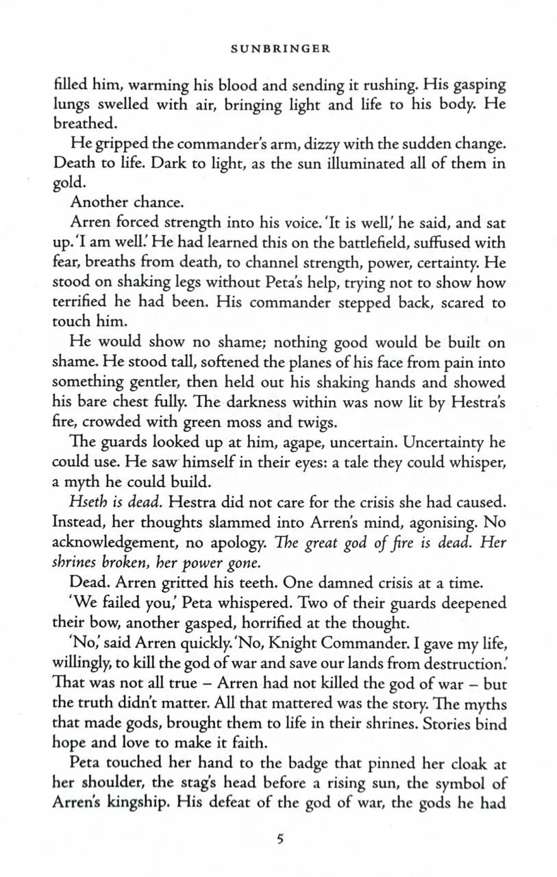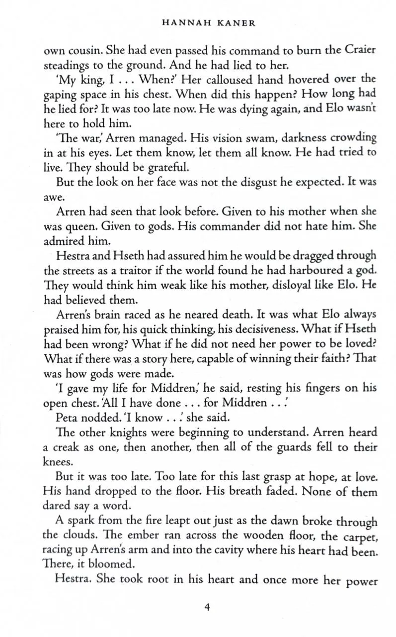 Meanwhile, Elogast, no longer a loyal knight of King Arren, has been tasked with killing the man he once called friend. The king vowed to eradicate all gods throughout the land, but has now entered into an unholy pact with the most dangerous of them all. And where his heart once beat, a god now burns. . .