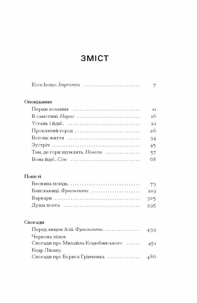 Серед найяскравіших творів збірки — оповідання Червона лілея і Кедр Лівану. Вони присвячені видатним діячам української культури — Михайлу Коцюбинському та Борису Грінченку. Ці твори сповнені глибоких роздумів, щирої поваги та вдячності авторам, які стали символами культури і прогресу свого часу.