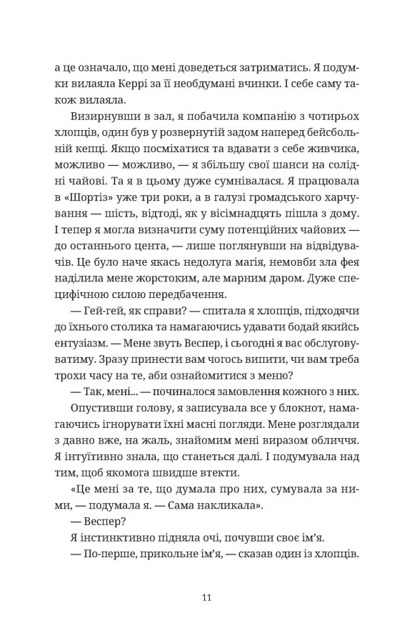 Головна героїня роману — Веспер Райт, дівчина, яка вісімнадцятирічною втекла від своєї релігійної громади у пошуках свободи. Вона покидає дім, починає нове життя в місті, працює офіціанткою, проте самотність і постійне внутрішнє напруження не залишають її.