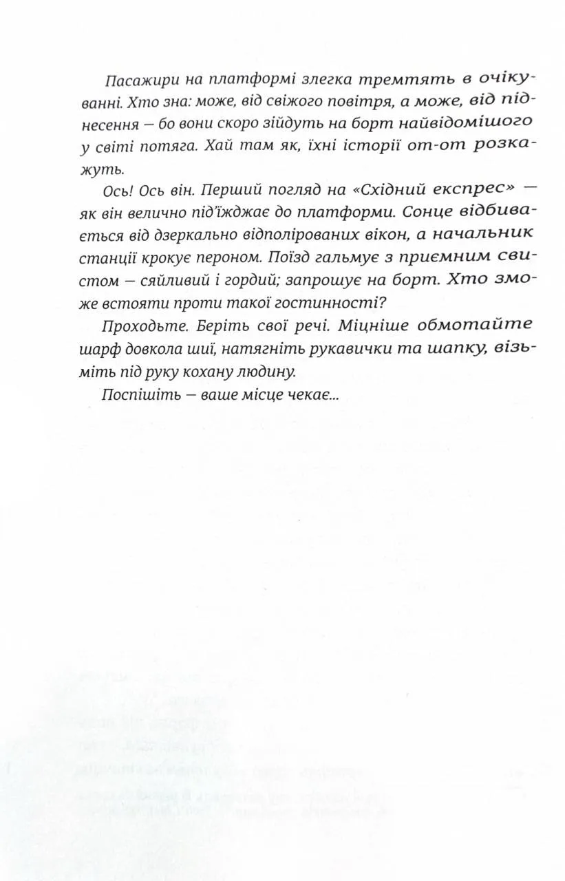 Замовляйте цю захопливу новинку вже сьогодні та пориньте в незабутню ніч на борту Східного експресу разом із незнайомцями, долі яких переплітаються у найнеочікуваніший спосіб.