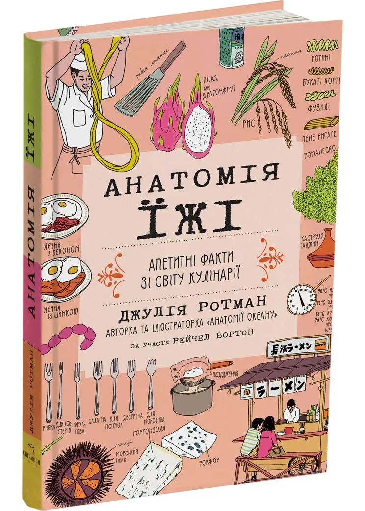 Книга Анатомія їжі — це справжній кулінарний бестселер, написаний ілюстраторкою та дослідницею Ротман Джулією. У ній кожна сторінка — це вибух кольору, гумору і захопливих фактів про їжу. Вона поєднує енциклопедичні знання з яскравими ілюстраціями, приводячи нас від ферми до вашої тарілки. Видання створене спеціально для тих, хто хоче не просто їсти, а розуміти, звідки береться їжа, як вона готується і як впливає на наше життя.